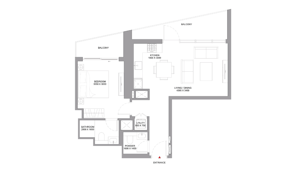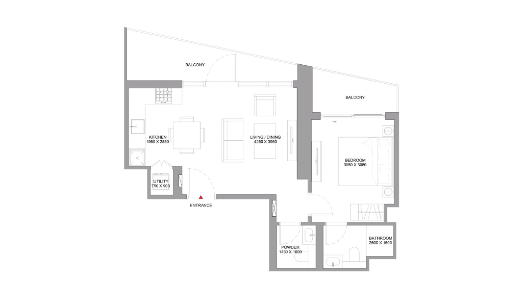 Sobha Central offers a variety of thoughtfully designed 1-bedroom apartment configurations across multiple towers, with options that include balconies, powder rooms, utility rooms, and sea views.