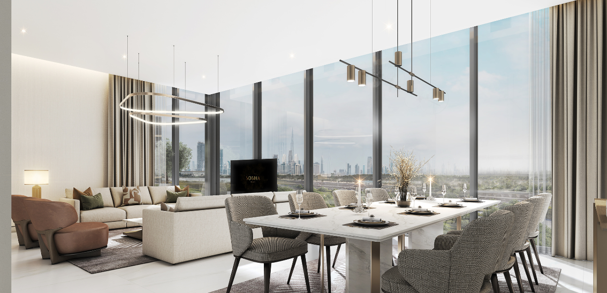Elements at Sobha One offers 1–4 bedroom luxury apartments for sale, combining elegant design with panoramic views of Dubai Creek and the skyline.