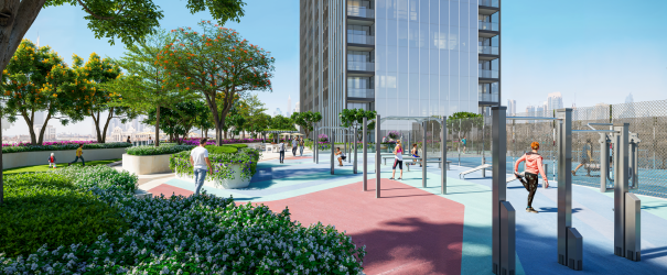 At The Element at Sobha One, the master plan is a seamless blend of sophisticated design and green harmony. Central to this vision is an 18-hole Pitch & Putt golf course, sprawling landscapes, water features, and shaded walkways that encourage exploration and community interaction. A rooftop resort-style pool with 270° panoramic views, a stylish observation deck, and an elegant podium level bring together recreation and relaxation in perfect unison. The design is not just functional—it’s experiential, ensuring that every moment you spend within the development is an invitation to reconnect, recharge, and relish life to the fullest.
